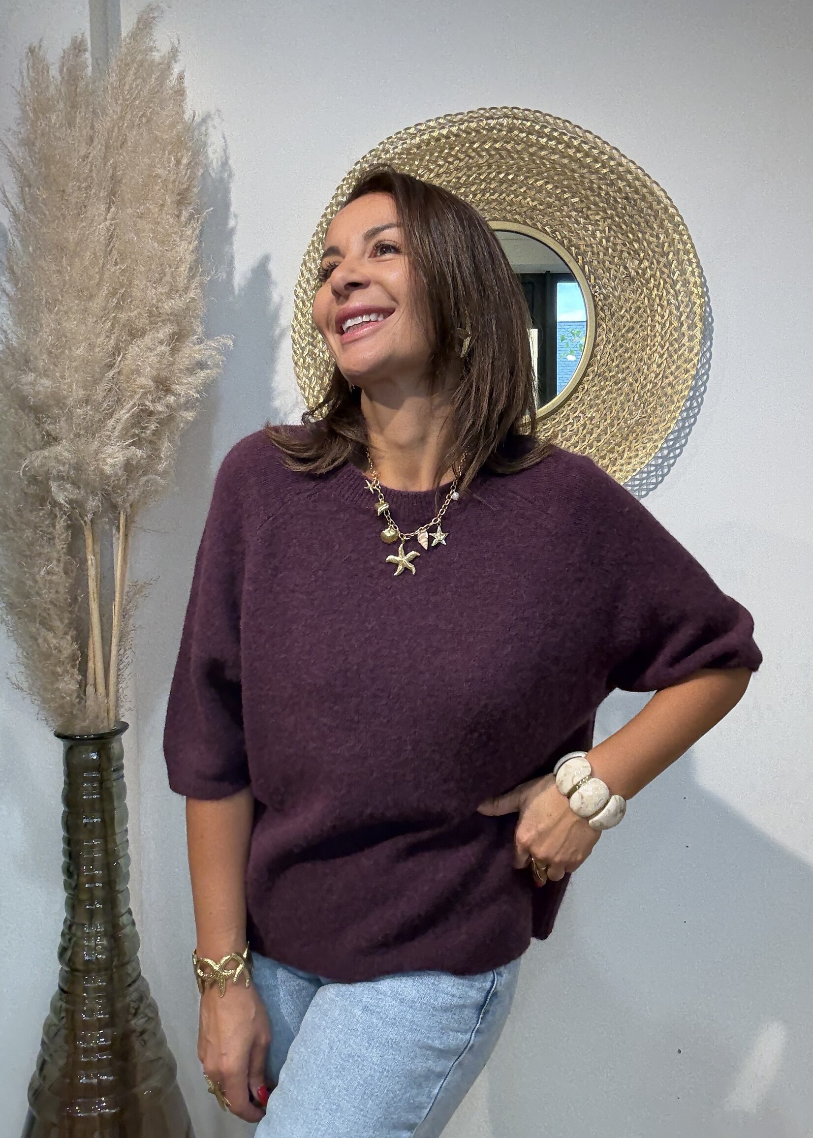 Kelly trui met korte mouwen, zacht en luchtig. Mix van mohair en wol voor cosy comfort. Ideaal voor tussenseizoen of frisse avonden.